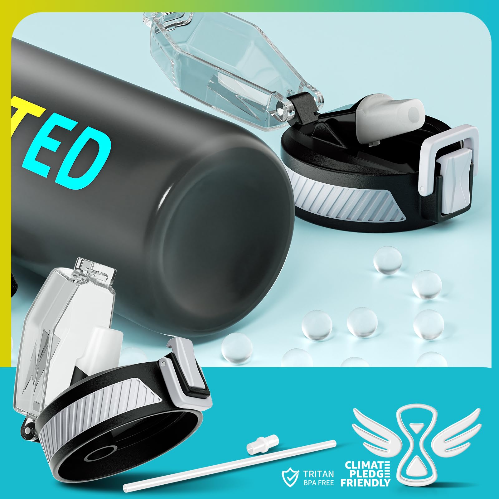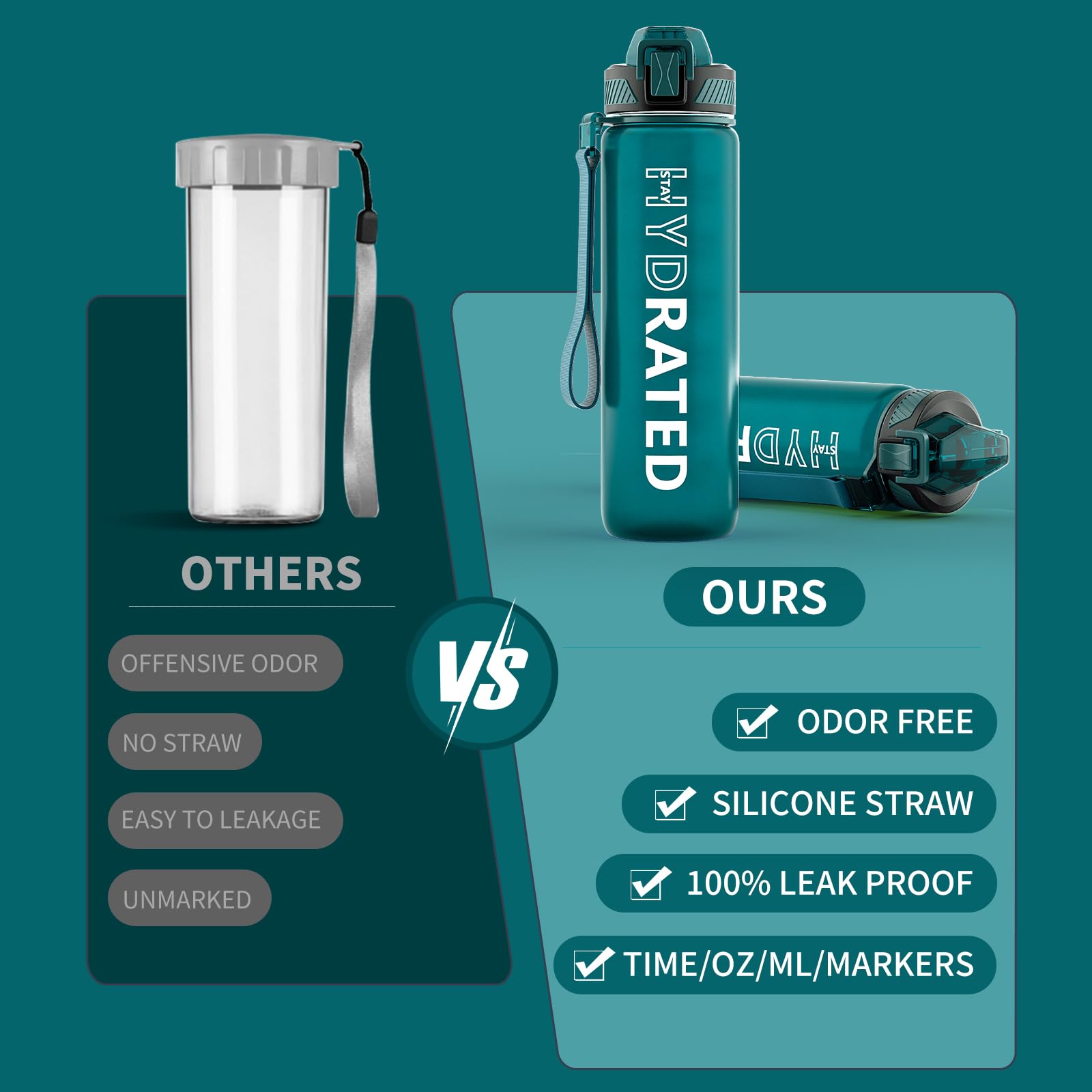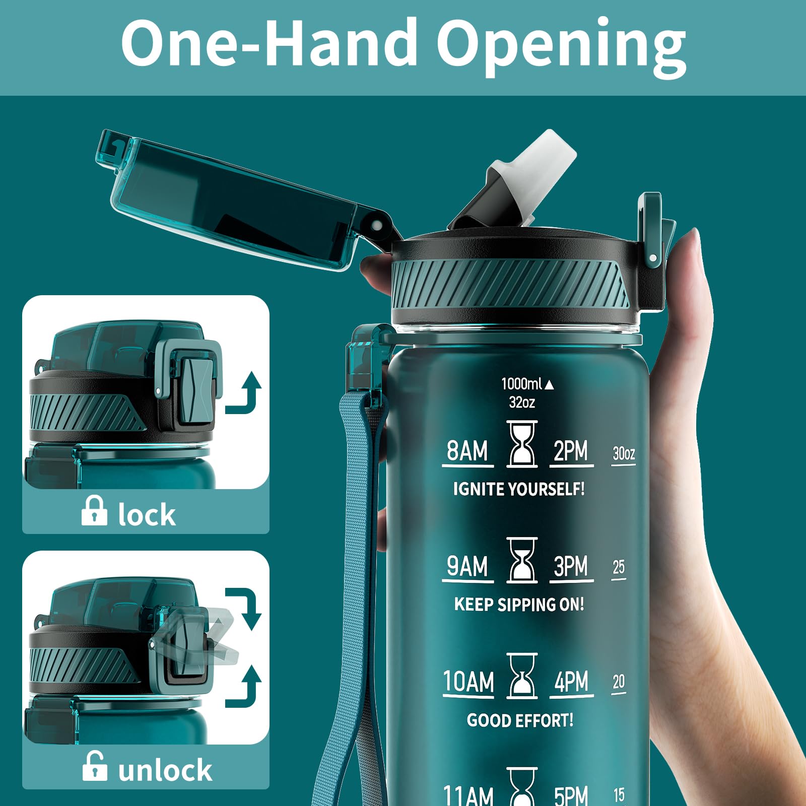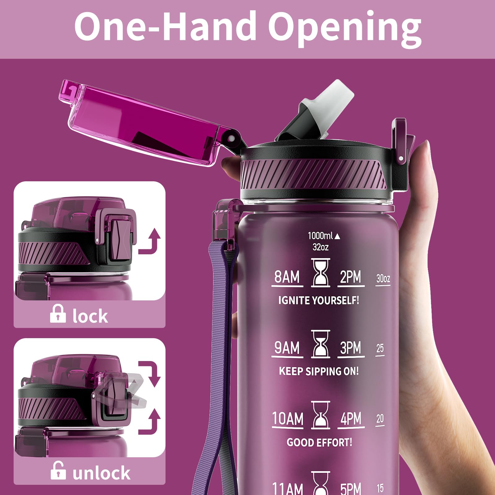 - Easily Open & Leakproof: Our motivational water bottles flip-top lid is designed with a secure lock, which effectively preventing dust and leak-proof. It can be easily opened with one hand. Our sports water bottles for school has a silicone nozzle with a straw inside to prevent turbulent water flow