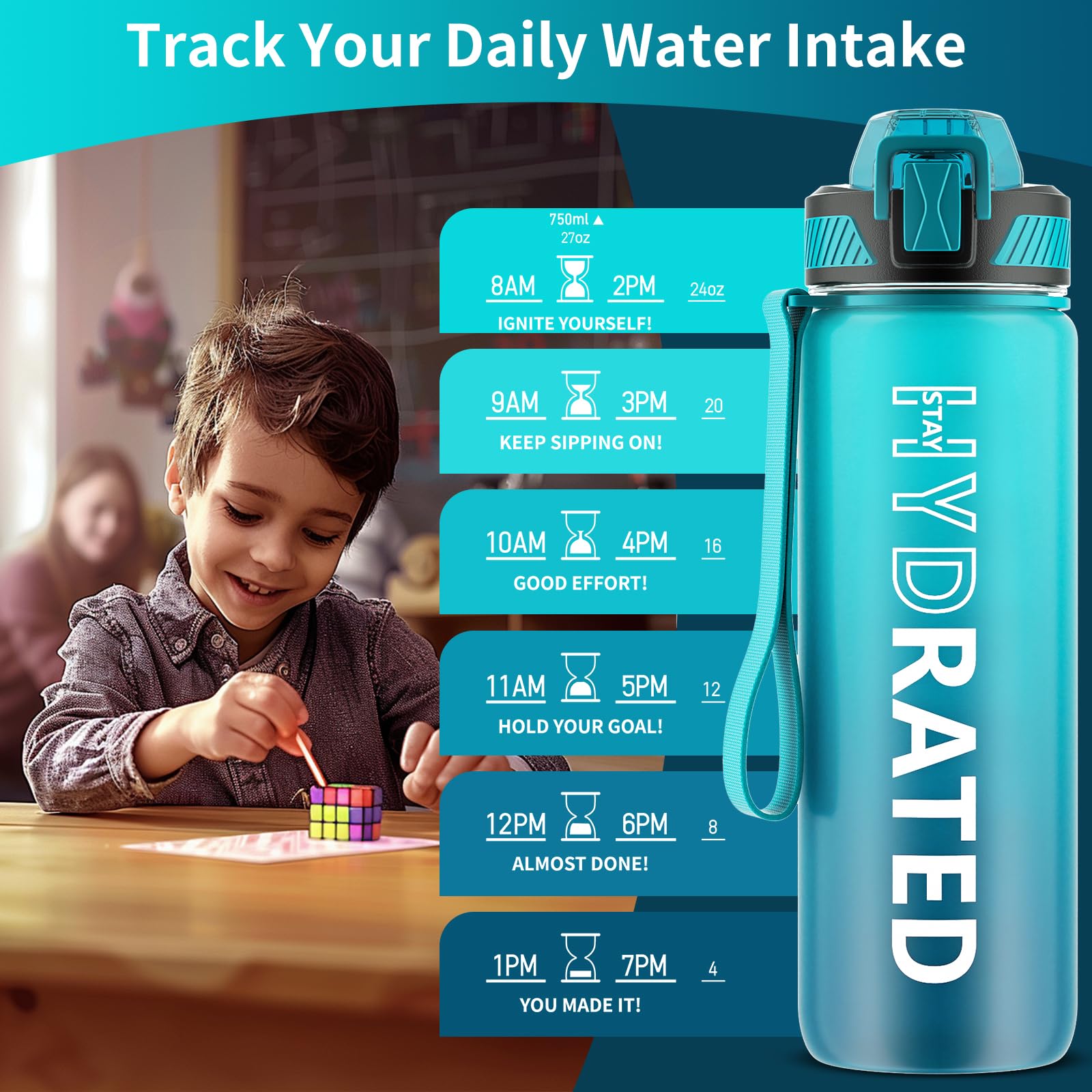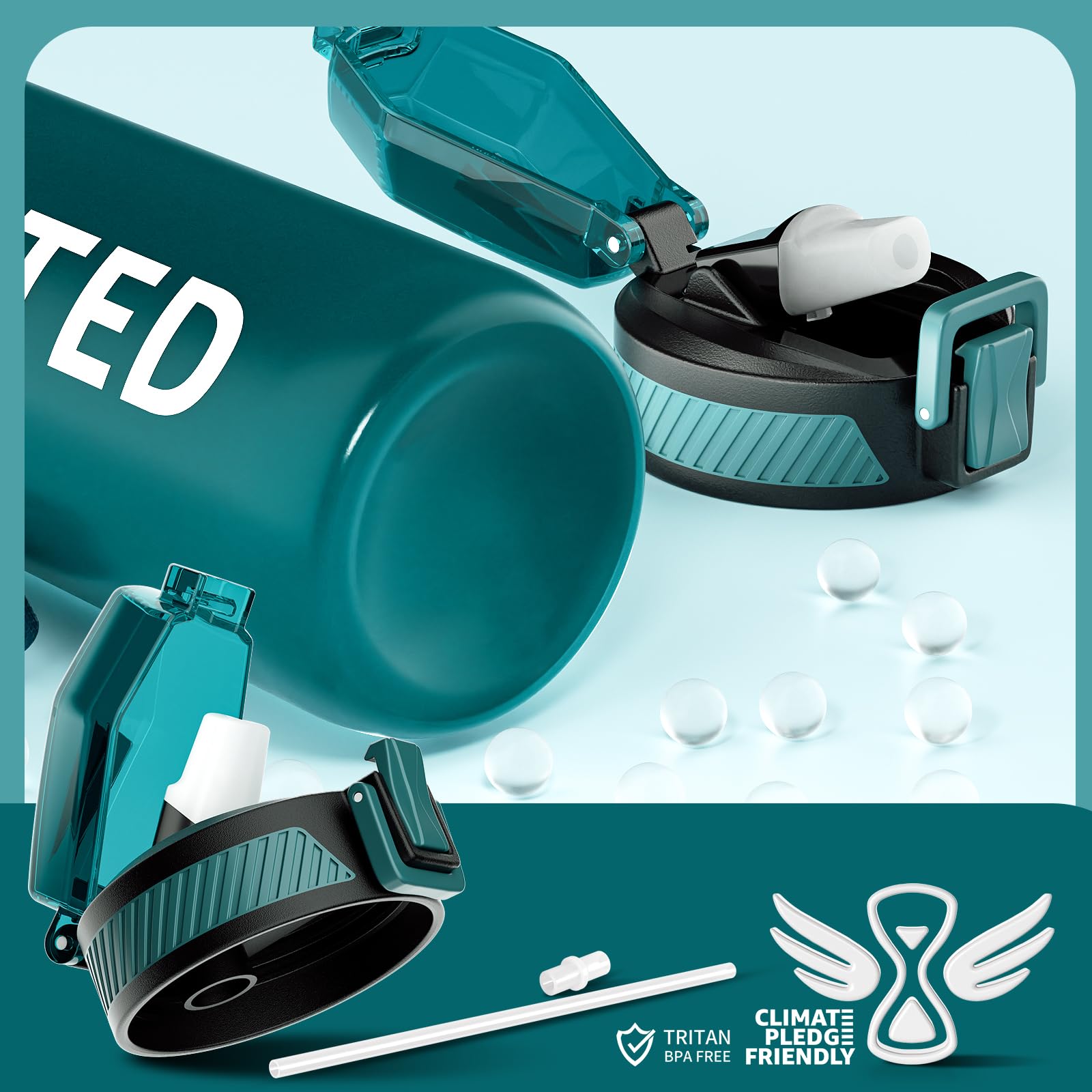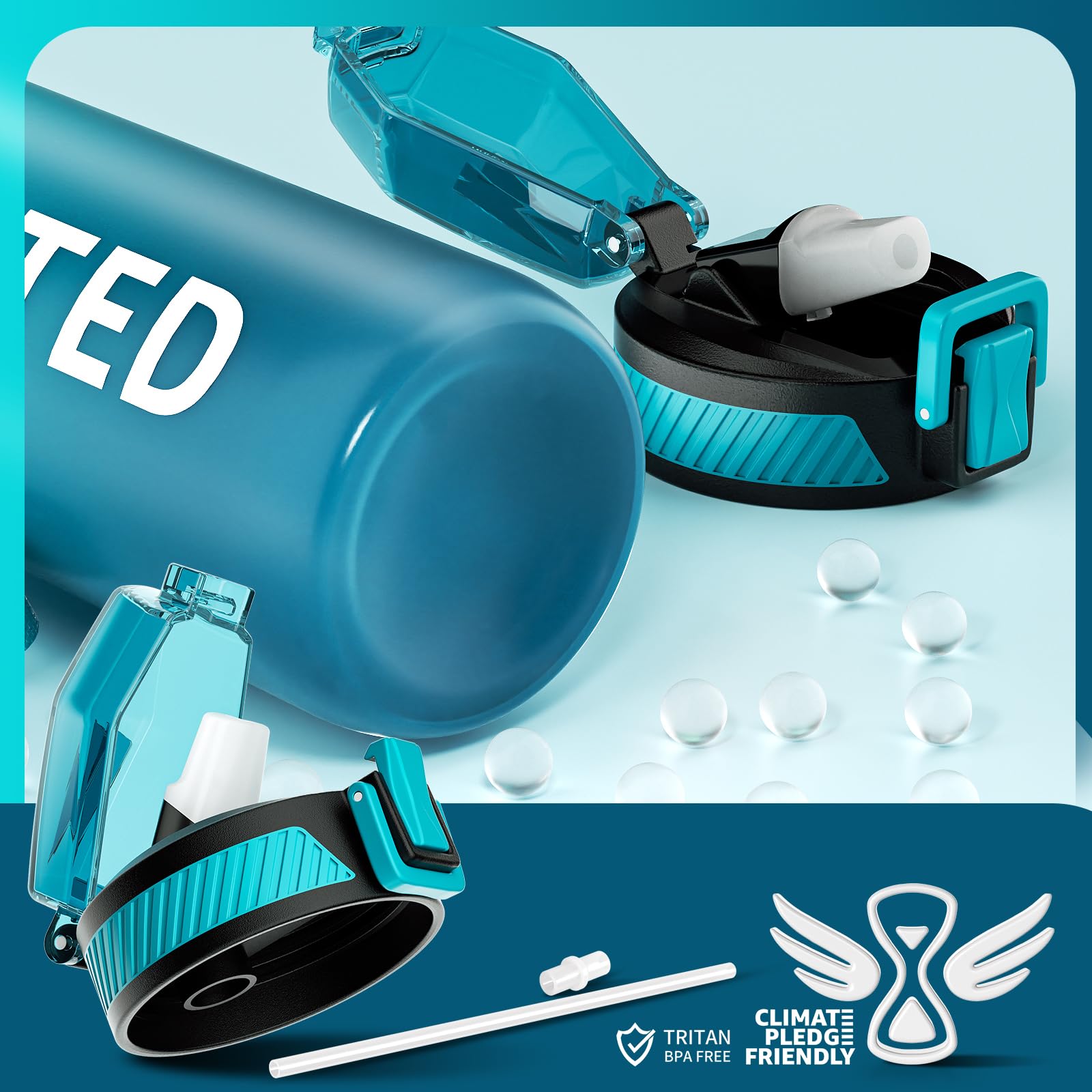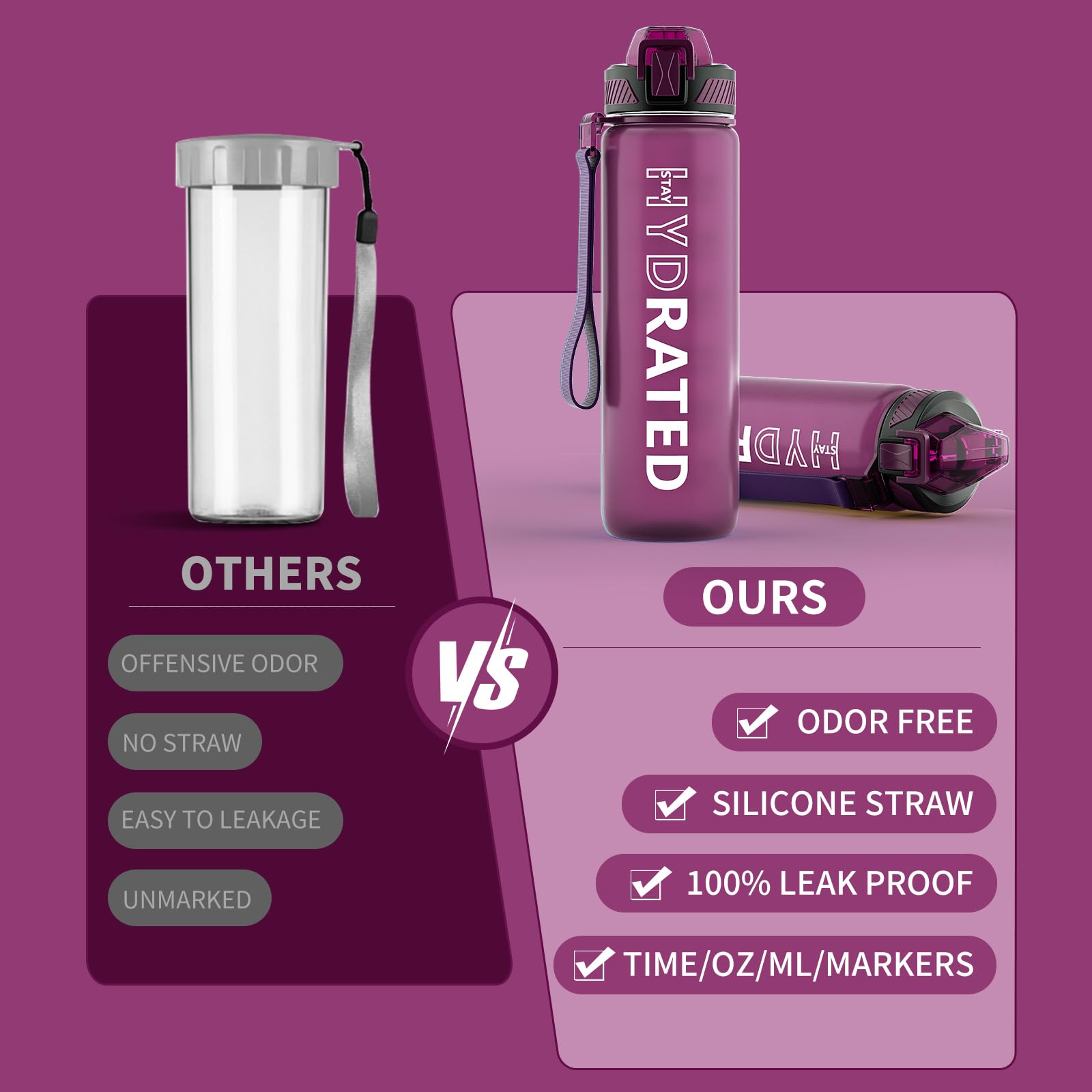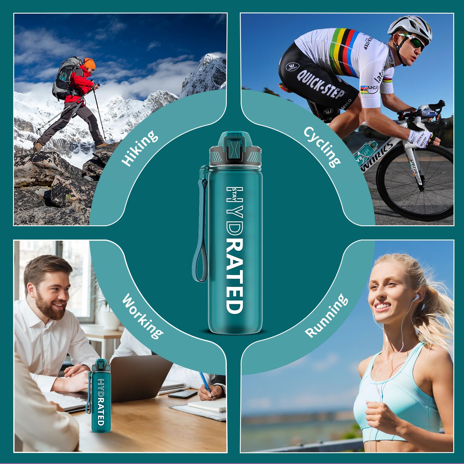 - Easily Open & Leakproof: Our motivational water bottles flip-top lid is designed with a secure lock, which effectively preventing dust and leak-proof. It can be easily opened with one hand. Our sports water bottles for school has a silicone nozzle with a straw inside to prevent turbulent water flow