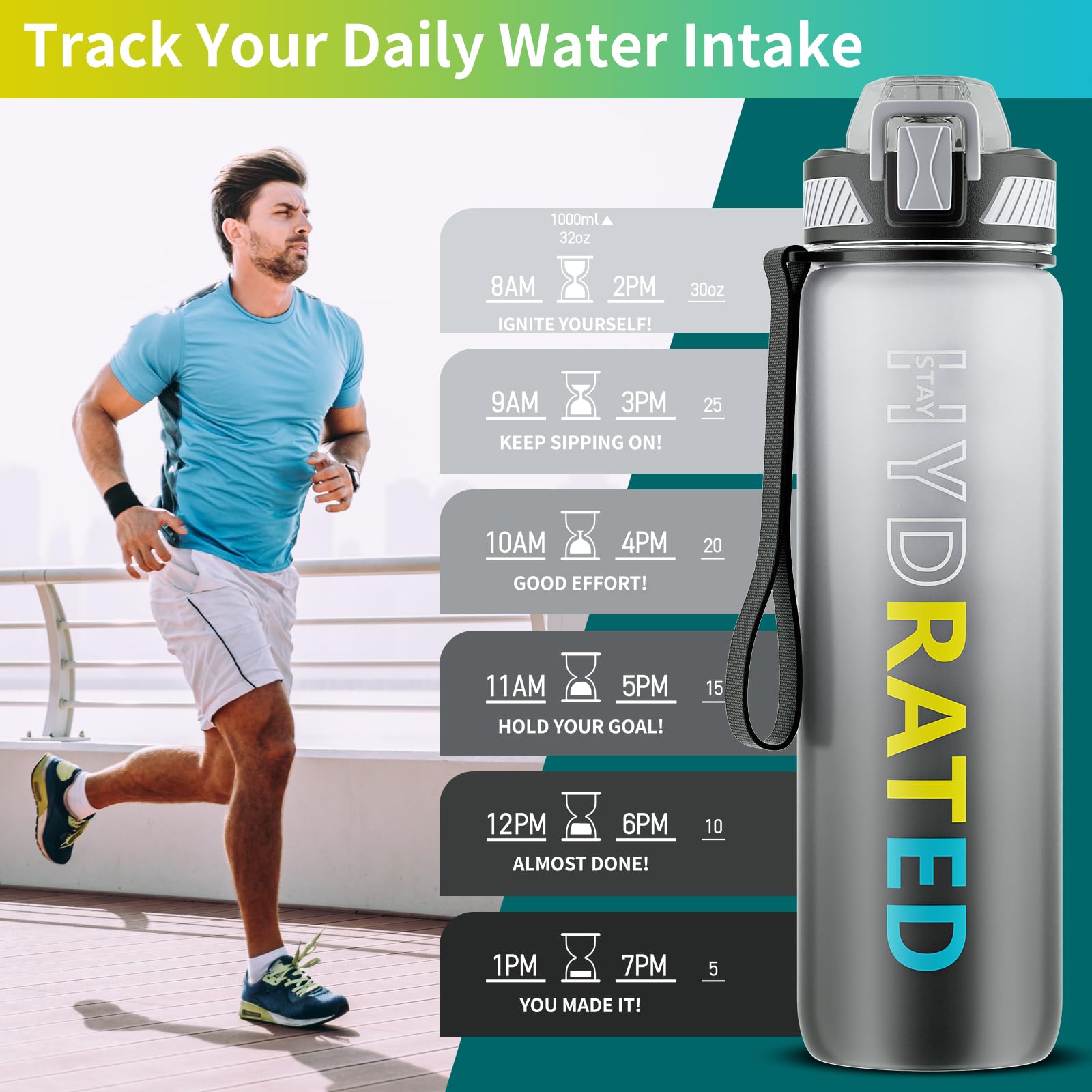 - Motivational Time Marker: QLUR 32 oz Water Bottles as your daily partner is designed with motivational quotes by the hour, it keeps your daily water intake on track. The inspirational water bottle helps you stay hydrated throughout the day